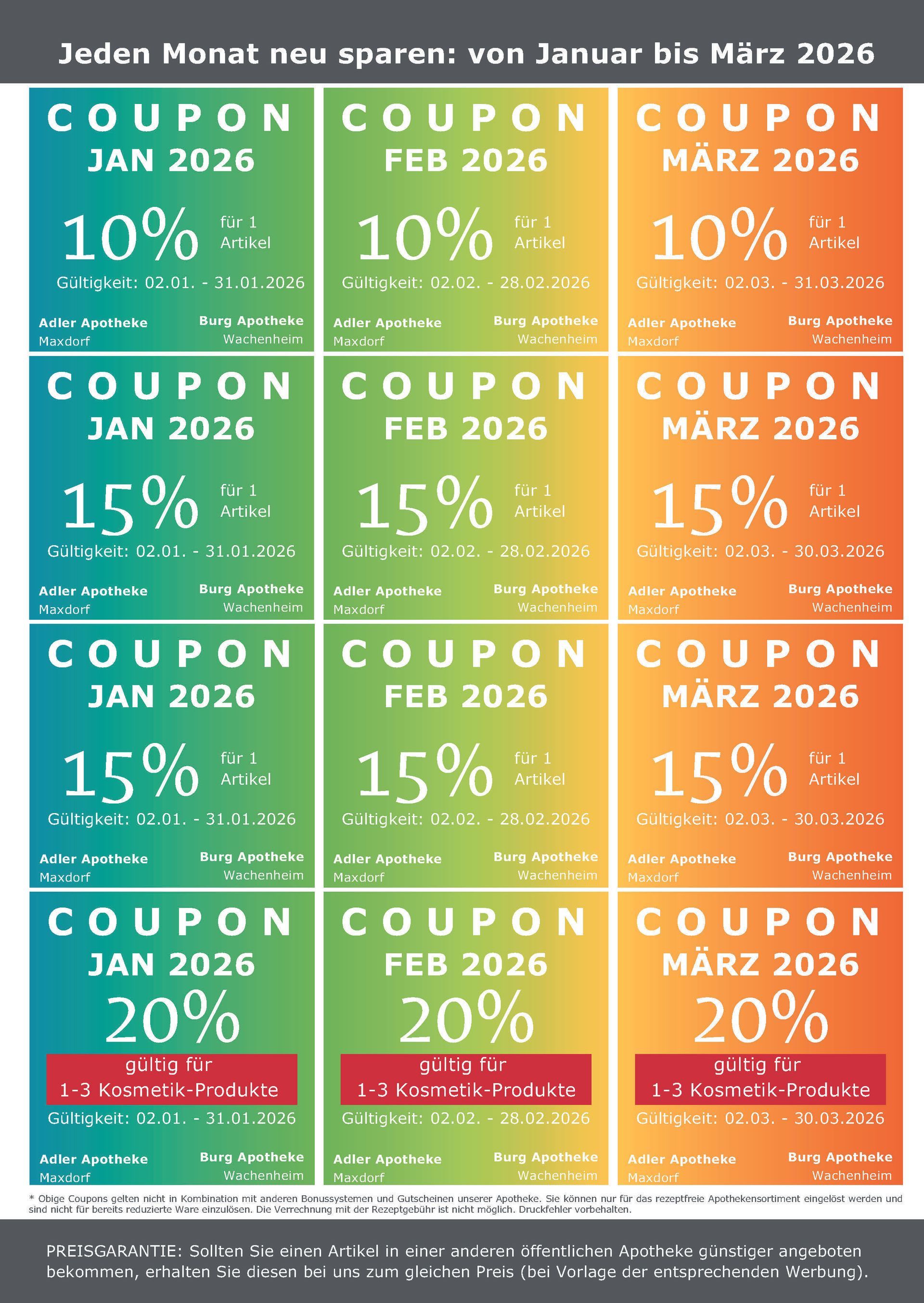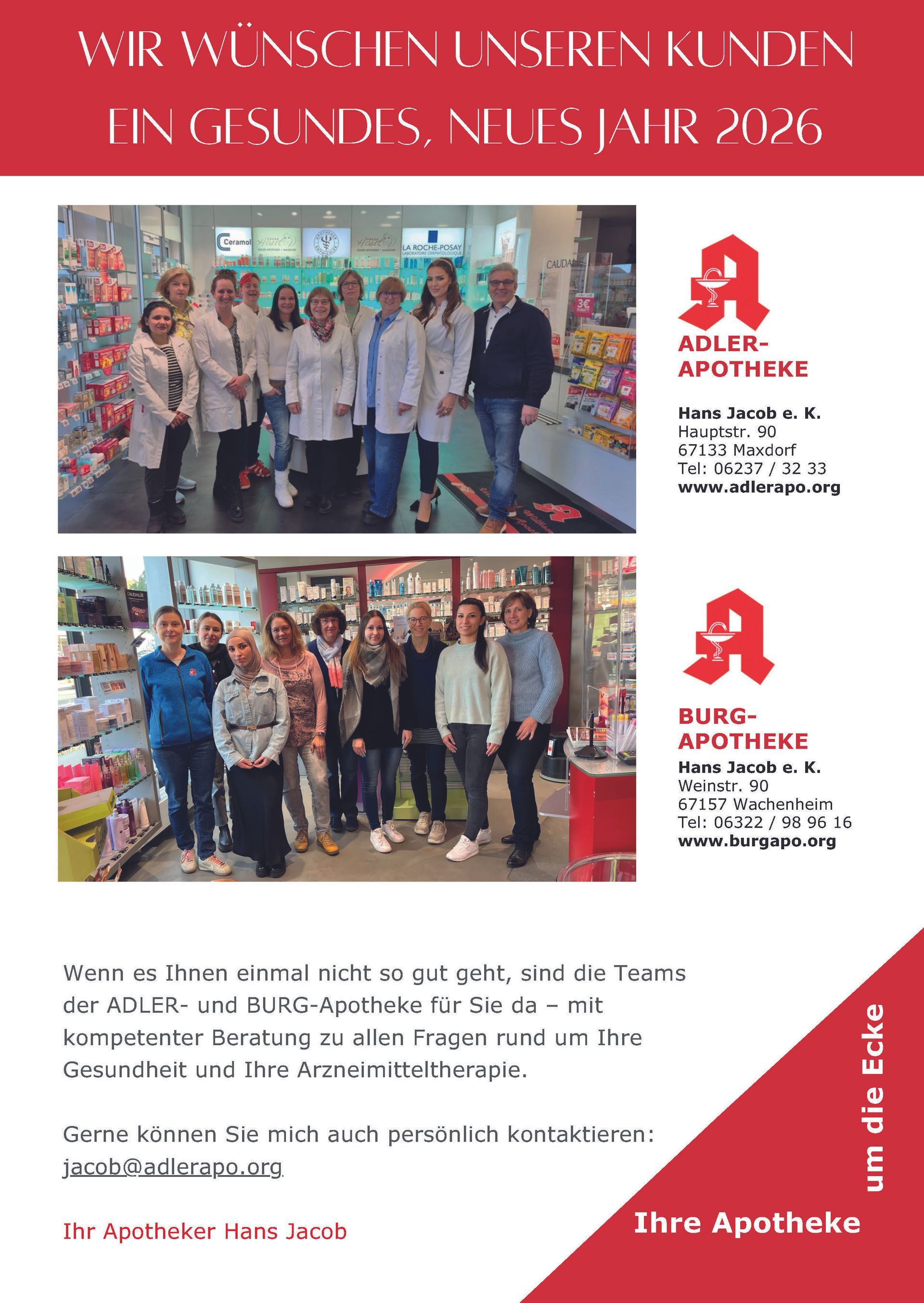 In der Burg-Apotheke in Wachenheim beraten wir Sie umfassend zu allen Produkten unseres reichhaltigen Sortiments. Unser Leistungsspektrum ist umfassend und basiert auf den Erkenntnissen moderner Medizin und Arzneimittelkunde. Unsere Mitarbeiter werden fortlaufend geschult, um für Sie stets auf dem neuesten Stand zu sein.